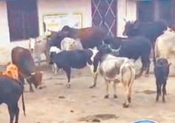 ग्राम सचिवालय मे बंद किए छुट्टा पशु, पुलिस ने बाहर निकाला