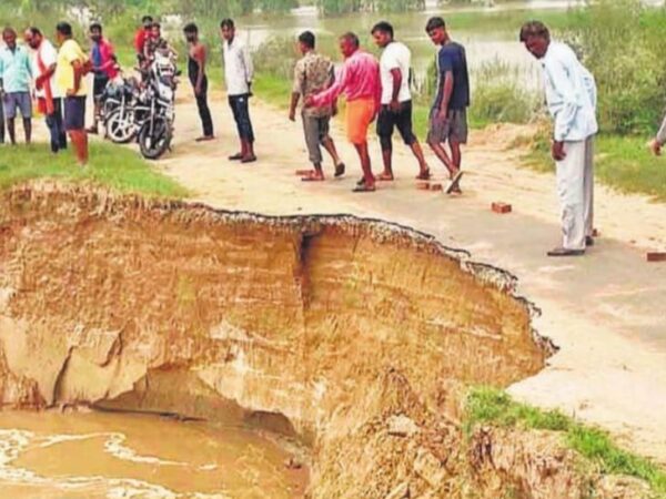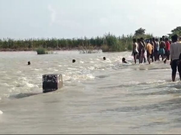 बाइक पर जा रहे चार लोगों का परिवार बाढ़ के पानी में बहा,महिला की मौत
